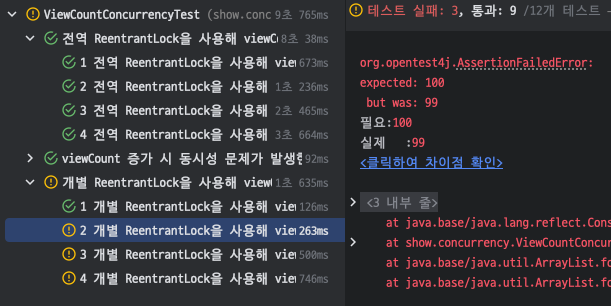 문제점) ReentrantLock 만 사용했을 당시의 동시성 이슈가 잘못되었다.
